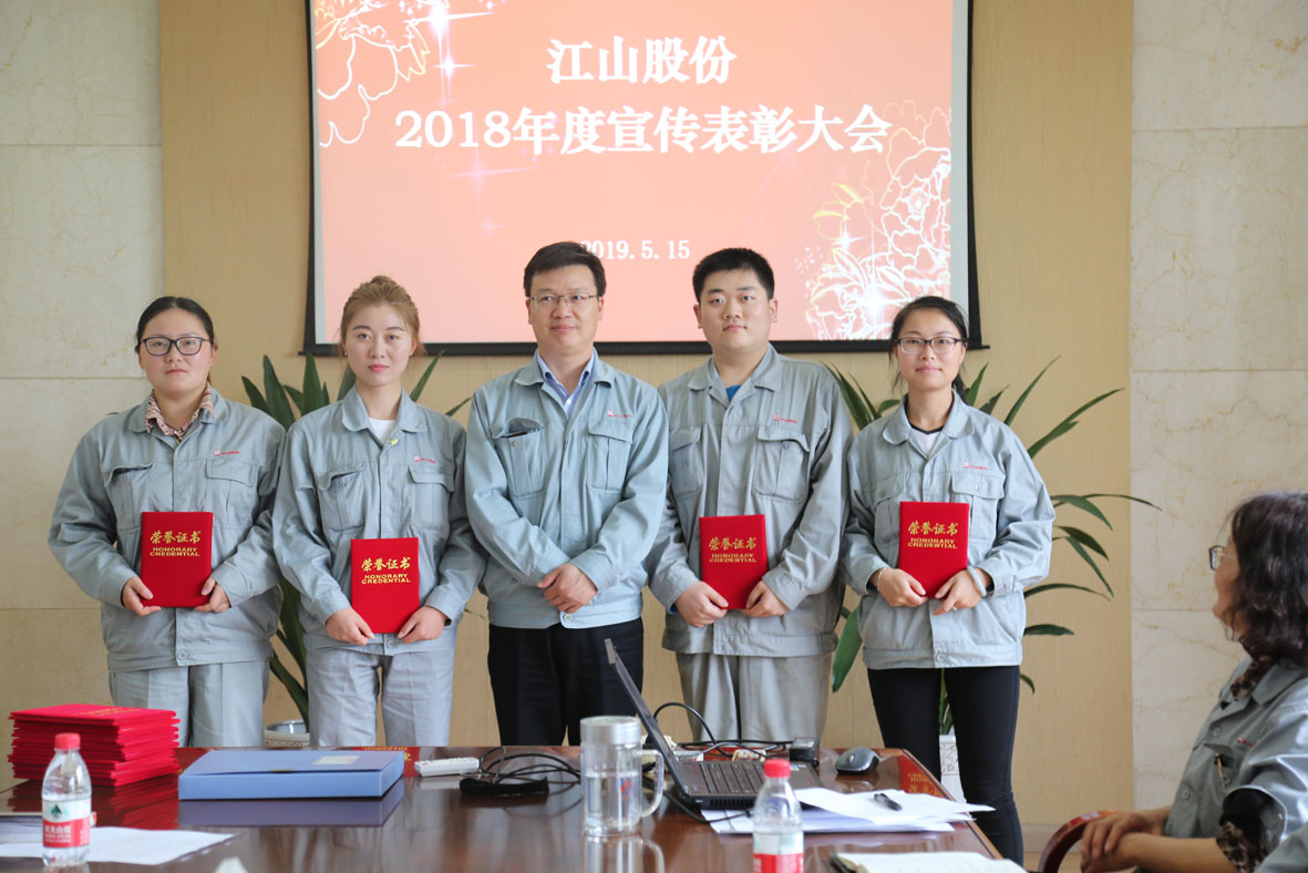 江山股份綜合管理部黨群總監(jiān)張琴對2018年度宣傳工作作了總結(jié),并對2019年度宣傳工作進(jìn)行部署。2019年公司宣傳工作要在發(fā)揮好《江山股份》報等宣傳平臺作用的基礎(chǔ)上,進(jìn)一步發(fā)揮新媒體平臺作用,實(shí)施微信公眾號、網(wǎng)站升級,提高新媒體宣傳的深度和廣度,使工作更貼近公司重點(diǎn)中心工作,充分發(fā)揮宣傳工作樹形象展風(fēng)采、宣傳重點(diǎn)中心工作、聚焦員工關(guān)注、記錄重大事件的功能。2019年度公司宣傳重點(diǎn)工作:1、開展慶祝建國70周年“我與江山共成長” 主題征文和“出彩江山人”文藝匯演等系列宣傳活動。2、對公司的戰(zhàn)略重點(diǎn)事項和重大事件進(jìn)行留痕拍攝記錄。3、加強(qiáng)主題性約稿工作的力度。把生產(chǎn)管理、先進(jìn)人物和事跡、基層一線中的閃光點(diǎn)用鮮活的文字表現(xiàn)出來,更好的助力公司中心工作。會議明確了年度優(yōu)秀作品的評比辦法以及微信制作團(tuán)隊的建設(shè)的要求。會上,江山股份首次推出了年度優(yōu)秀作品評選,2018年度張海波、許李娟、趙蕾3人獲得“銀筆獎”。