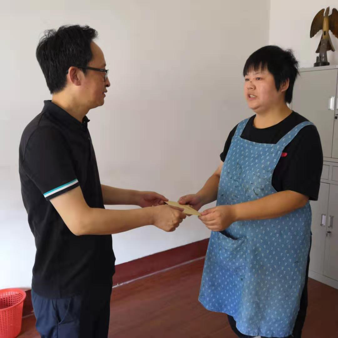 張?jiān)葡的贤ㄊ刑乩毠?,公公和丈夫因重病先后離開人世,留下了不小的債務(wù),婆婆常年生病,女兒在北城中學(xué)上學(xué),一家全靠她一人的微薄工資維持。今年女兒丁佳琪中考發(fā)揮出色,考取了市一中。29日上午,本洲鞋業(yè)總經(jīng)理張榮慶,工會(huì)主席季華把1000元助學(xué)金送到張?jiān)剖掷铮瑥垬s慶勉勵(lì)張?jiān)?span>努力工作,戰(zhàn)勝困難,好好培養(yǎng)女兒的學(xué)習(xí),3年后考上理想的大學(xué)。季華鼓勵(lì)她早點(diǎn)找到心儀的另一半,和她共同分擔(dān)暫時(shí)的困難。張?jiān)埔脖硎緯?huì)好好工作,鼓勵(lì)女兒努力學(xué)習(xí),將來回報(bào)關(guān)心和幫助她家的各級(jí)領(lǐng)導(dǎo)。
