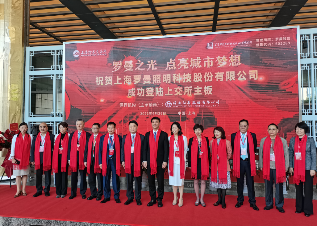 426日,羅曼照明科技股份有限公司(股票簡稱:羅曼股份)在上海證券交易所掛牌上市交易,成功登陸A股主板,股票代碼:605289,發(fā)行價(jià)格27.27元/股,發(fā)行新股2167萬股。