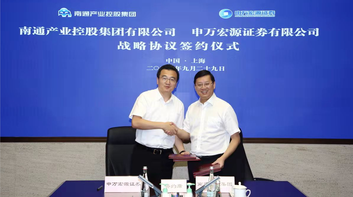 9月29日上午,南通產(chǎn)控集團與申萬宏源證券戰(zhàn)略合作協(xié)議簽約儀式在申萬宏源上??偛颗e行。南通產(chǎn)控集團黨委書記、董事長張劍橋,申萬宏源證券黨委副書記、總經(jīng)理、執(zhí)委會主任楊玉成簽署戰(zhàn)略合作協(xié)議。雙方約定,申萬宏源證券利用其金融優(yōu)勢,南通產(chǎn)控集團利用其產(chǎn)業(yè)優(yōu)勢,在產(chǎn)業(yè)資本運作,投融資業(yè)務方面展開全方位合作。