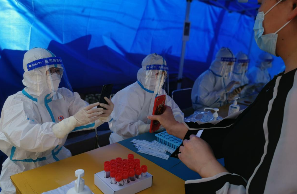 為確保疫情防控知識(shí)宣傳落實(shí)到位,國(guó)融公司綜合事務(wù)部主任袁莉,盡管身患糖尿病,仍主動(dòng)承擔(dān)起了紡織大廈疫情防控的任務(wù)。線上,她利用微信朋友圈、微信群等陣地及時(shí)轉(zhuǎn)發(fā)疫情防控權(quán)威信息,大力推進(jìn)防疫宣傳;線下,她連續(xù)值班值守,主動(dòng)參與起鳳社區(qū)卡口執(zhí)勤,服務(wù)三輪全員核酸檢測(cè),為全力撐起疫情防控“安全傘”貢獻(xiàn)力量。 在疫情防控工作中,資產(chǎn)經(jīng)營(yíng)部主任楊凌燕夫婦更是以辛苦付出贏得了一致認(rèn)可。她是支援起鳳社區(qū)的志愿者,身穿“大白”協(xié)助醫(yī)護(hù)人員進(jìn)行全民核酸檢測(cè);她是支援所在社區(qū)的急先鋒,維持秩序、引導(dǎo)群眾,盡心盡責(zé)。她的丈夫作為一名公務(wù)員也一起就地轉(zhuǎn)為志愿者,兢兢業(yè)業(yè)做著宣傳解釋疫情防控相關(guān)政策、服務(wù)全員核酸檢測(cè)等工作。楊凌燕說(shuō):“累是真的,但是能得到大家的認(rèn)可和贊揚(yáng),值了!” 下沉到社區(qū)的干部職工化身“大白”成為了協(xié)助做好核酸檢測(cè)的標(biāo)配。財(cái)務(wù)審計(jì)部副主任張煒第一次穿上全套“大白”支援起鳳社區(qū)核酸檢測(cè)后,就有了非常深刻的體會(huì)。4月12日下沉到所在社區(qū)后又一次穿起“大白”,四個(gè)多小時(shí)核酸檢測(cè)完,再回到家面對(duì)兩個(gè)孩子時(shí),她表示“電量?jī)H剩百分之一”。話語(yǔ)中,既有樂(lè)觀積極的心態(tài),更有對(duì)工作負(fù)責(zé)的堅(jiān)守和擔(dān)當(dāng)。