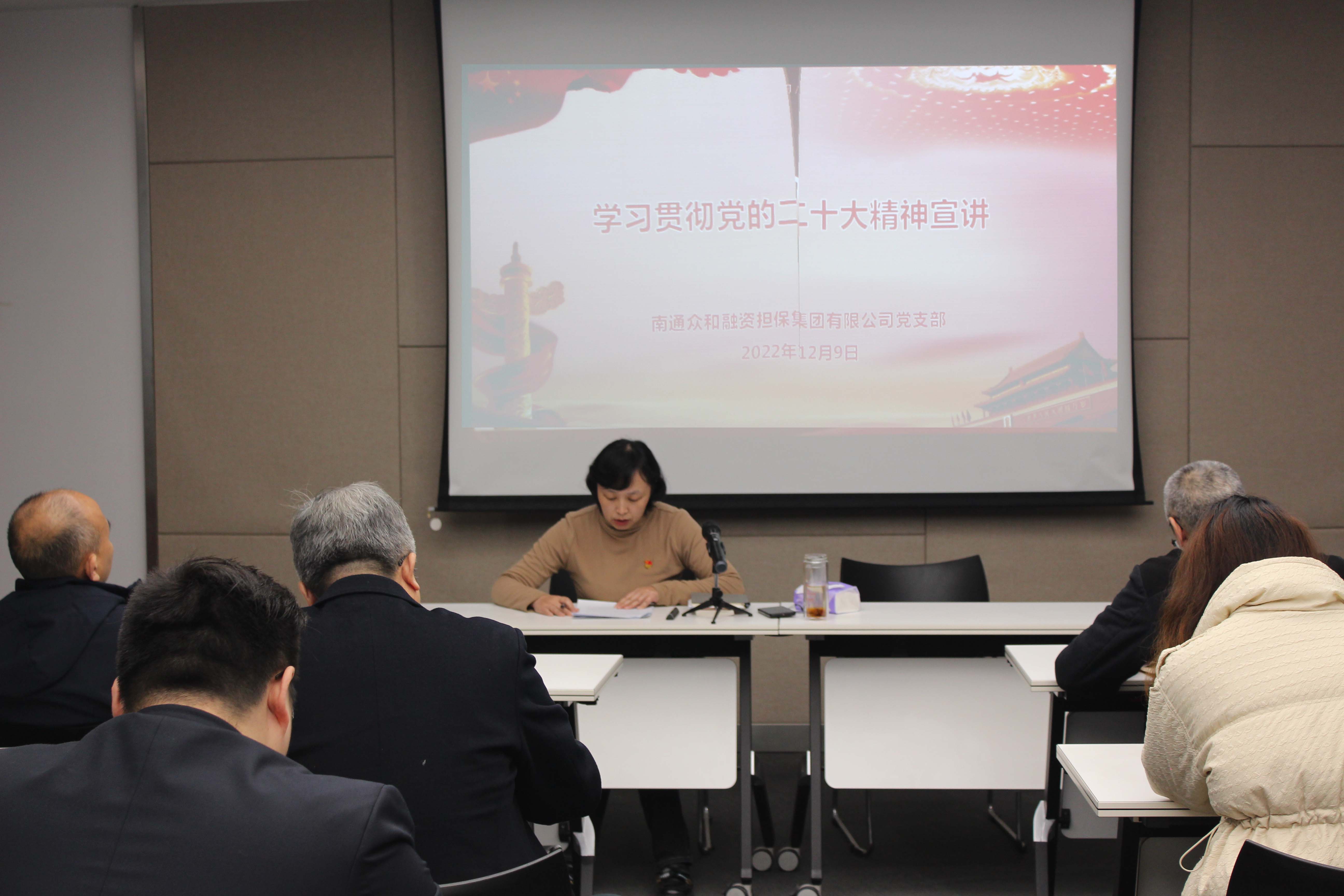 近日,眾和擔保黨支部組織開展學習貫徹黨的二十大精神宣講活動,黨支部書記李瑾作宣講報告,公司中層以上領導及全體黨員參加活動。